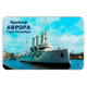 A digital rendering of the Russian Cruiser Aurora moored in the Neva river at St. Petersburg. Cyrillic text reading "Крейсер Аврора" (The Cruiser AURORA) and "Санкт-Петербург" (St. Petersbutg) also appears. The Aurora is an iconic symbol of the Russian October Revolution of 1917. At the time of the earlier February Revolution the Aurora was docked in the Neva river at Petrograd (St. Petersburg), later renamed Leningrad, for repairs. Some of the vessel's crew had participated in the revolution which resulted in the abdication of Tsar Nicholas II. A revolutionary committee was created on the ship and most of the crew joined Lenin's Bolsheviks, who were preparing for a Communist revolution. At 9.45 p.m on 25 October 1917 the Aurora fired a blank round from her forecastle gun to signal the start of the assault on the Winter Palace. The Aurora has served as a museum ship and tourist attraction for millions of visitors at her present location in Leningrad (now St. Petersburg) for decades.