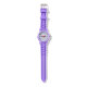 I only have one complaint. I ordered the watch with clear case and strap, and what was sent was white case and strap. I'm going to keep it because 1) it looks very nice in white, and 2) it would take too long to get a replacement made and sent in time for my occasion. Aside from the mix up with the color, the watch does look very good in white. The purple dial is actually sparkly which did not show in the online images. That was a nice surprise. If you like Swatch watches this is very similar to those. It's 33.6mm in diameter, 10.5mm thick, and 40.6mm lug to lug. Stainless steel case back says 3ATM/30m WR, so no swimming or showering or submerging this one. If you like Woodstock, this is a great choice.