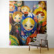 Colorfully painting Russian Nesting Dolls, Matryoshka dolls. The one featured in the center has a cute ladybug on her head.