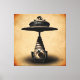 This artwork depicts a Russian UFO hovering in the night sky. The UFO is a bright, metallic silver color, and its lights are flashing in a mesmerizing pattern. The stars in the sky are twinkling in the background, and the moon is a bright crescent in the corner of the painting. The UFO is surrounded by a mysterious aura, and its presence is both awe-inspiring and a little bit eerie.