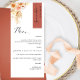 Why spend in place cards and menu cards when you can have an elegant All-in-one elegant Menu personalized with each guest name! Contemporary, simple and elegant design with exquisite watercolor floral detail in a beautiful blend of peach, orange, blush, dusty coral, cream and champagne hues. Modern hand written calligraphy elements. Stripe on the top right corner in rust red-orange tone with guest name in black. Back in same rust as stripe. Ability to change both stripe color or back by selecting "customize further". NOTE: please an individual order for each menu by adding guest name into menu, add menu into shopping cart; then come back to menu, add second guest name, add menu to shopping cart...continue with this process with all guest names on your list. Zazzle does not receive guest names lists to print. For short first guest names add with your keyboard spacebar a few empty "spaces" before name to center. Design available in a variety of color choices. Part of our "Peach Floral Delight and Rust Orange" collection with a variety of coordinating products available. Visit the entire collection at: https://www.zazzle.com/collections/peach_floral_delight_and_rust_orange-119930026374948611