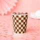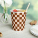 Rust brown and beige checkerboard pattern paper cups