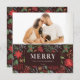 Rust Brown Merriest Christmas Floral Pattern Photo Holiday Card
