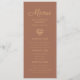 Design your own wedding reception menu with the help of our template. This elegant rust/burnt orange wedding reception menu is accented with 2 cute love birds inside an intricately designed heart. It is personalized with the names of the bride and groom and their wedding date. Contact me for help with customization or if your personal menu doesn't fit the template provided. This menu design can be printed on the front and back of the card for no additional fee.
