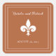 Elegant and simple Wedding sticker featuring a fleur de lis against a rust background. This design is a unique choice for a modern wedding. Easy to customize with your wedding details. Click "Customize It" to find more personalization options.
