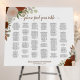 This beautiful wedding seating chart has room for up to 250 names in alphabetical order. The rustic boho chic design features hand painted watercolor roses and flowers in shades of rust orange, coral peach, and burnt umber, interspersed with sprigs of autumn leaves and fall garden foliage. The lacy script calligraphy title makes it even more elegant, and there is space for your names and the wedding date below. Wonderful way to add beauty and style to your wedding reception while making it easy for your guests to find their tables.