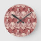 Rust Floral Seamless Pattern Large Flowers Minimal Round Clock