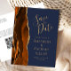 Rust Gold Agate Navy Blue QR Code Save the Date Announcement Postcard