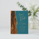 This elegant modern save the date postcard features a burnt orange and rust watercolor agate border trimmed with faux gold glitter. Easily customize the gold-colored text on a teal blue background. On the reverse side, edit the customizable return address and enter your wedding website URL to generate a QR code your guests can scan to learn more about your upcoming event.