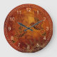 Rusty color steampunk wall clock featuring mechanical steampunk hummingbirds in black and rust red with cogs background