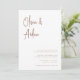 Plain white envelopes are included with paper invitations and will come to fit the invitation size you select. If you don’t need the envelopes, you may choose to not receive them by selecting the dropdown below "Envelopes" and choosing "None." If you’d like to have a design on your envelopes, you can browse all of these available envelopes to find the design that complements your Rust Modern Handwritten Script Invitation.