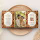 Rust Orange Gold Lace QR Code Photo Indian Wedding Tri-Fold Invitation