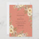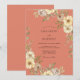 An earthy rust background sets a warm tone for this floral design, showcasing delicate cream roses and soft yellow anemones. Hand-painted watercolor leaves in sage green are arranged to create a lush, botanical effect. The combination of rich autumnal hues and muted floral elements provides a sophisticated and pastoral aesthetic.