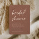 Invite guests to celebrate the bride to be with these modern and minimal bridal shower invitations with stunning rose gold foil accents. Simple design features "bridal shower" in casual handwritten script on a warm earth tone rust background, with your event details aligned at the lower left in modern off white lettering.
