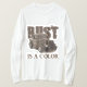 Rat rod pick up and the word rust behind it and is a color below it