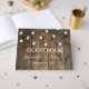Rustic wood, string lights, modern, script Wedding Guestbook. You can personalize it with your details.