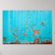 Rusted blue painted metal wall. Detailed photo tex Poster
