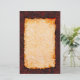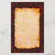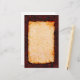 Stationery with a rusted red metal background, and burnt parchment pattern for the writing area. Industrial style metal and parchment stationery.