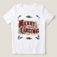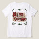 Holiday shirt with a vintage image of the red and gold 1876 Merry Christmas greeting.
