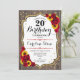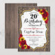 Rustic 20th Birthday - Roses Sunflowers Wood Invitation
