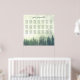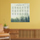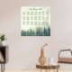 This 21 table wedding seating chart has table assignments for 210 guests - 10 people per table. The design is rustic yet elegant, featuring a woodland mountain scene with green pine trees shrouded in mist or fog. There is a lacy script calligraphy title reading "please find your table" as well as space for the names of the couple and the wedding date. Perfect for an outdoor or wilderness destination wedding.