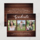 Announce your graduation to friends and family with these rustic wood, fun and modern photo collage graduation announcement cards. Customize with 3 of your favorite senior or college photos, and personalize with graduating year, name, high school or college. Personalize the back with your personal message, can also be for graduation invitations. These unique trendy and stylish graduation cards will make a lasting impression with family, friends, and your fellow classmates! COPYRIGHT © 2020 Judy Burrows, Black Dog Art - All Rights Reserved. Rustic 3 Photo County Wood Budget Graduation