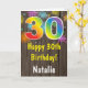 Rustic 30th Birthday Colorful Rainbow Fireworks Card with personalized name. For further customization, please click the "Customize it" button and use our design tool to modify this template.