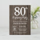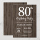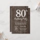 Rustic 80th Birthday Invitation