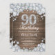 Rustic 90th Birthday Silver Diamond Invitation