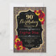 Rustic 90th Birthday - Sunflowers Roses Wood Invitation