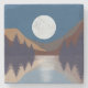 Rustic Abstract Landscape Forest Moon Reflection Stone Coaster