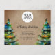 Rustic Add Logo Custom Text Christmas Tree Holiday Business Postcard. Rustic beige background and watercolor colorful Christmas tree. Insert your logo into the template and customize the text, company name, address and contact information. Holiday card for your clients and business partners.