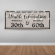 Rustic country adult joint birthday banner featuring a light wooden background, an elegant black border, string twinkle lights, and a twin party template that is easy to personalise.