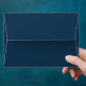 Elegant envelope featuring an anchor on the inside and navy color on the outside.