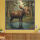 Loose yourself in the enchanting allure of this elegant bohemian moose artwork, where nature's grandeur meets timeless artistry. Set against a lush forest backdrop, this exquisite piece captures the serene beauty of a verdant woodland, rich with intricate details of flora and towering trees. The moose, standing majestically in a tranquil body of water, observes its surroundings amidst a tapestry of lush foliage, embodying the harmonious blend of botanical organic forms and nature's splendor. In the distance, the majestic mountains rise, completing the idyllic scene. Each element of the artwork, from the curling tendrils of the plants to the fine veining on the moose's antlers, is rendered with meticulous care, evoking a sense of nostalgia and wonder. This piece is a perfect homage to the elegance and intricacy of Art Nouveau design, offering a timeless window into a world where nature and art intertwine.