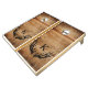 Natural Wood Cornhole Set, Hunter Green and Grey bags