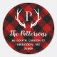 Custom round return address stickers personalized with your family monogram and address. This modern rustic design features your monogram initial with deer antlers on a red and black buffalo check background. Use the design tools to change the background color and fonts to further customize your own unique design. Perfect for addressing holiday cards, wedding stationery and more.