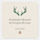 A charming rustic label, perfect for homemade candles or favors. The design on a kraft paper effect background features a pair of green antlers and a pine cone, with customizable text ("Mountain Meadow & Evergreen Dreams") to denote the scent or occasion. Ideal for woodland/mountain-themed weddings, Christmas gifts, or your own handmade product line.
