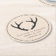 Rustic antler save the date coaster. Color can be changed. Part of a collection.