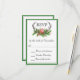 With enchanting rustic boho style, this wedding RSVP Card design features deer horns beautifully embellished with winter evergreens and berries and a red cardinal surrounded by a dark green border. Include your required RSVP response date in place of the sample text shown.