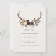 Rustic antlers navy burgundy blush pink floral bridal shower invitation. Modern script text coordinating design. Part of a collection.