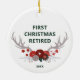 Rustic Antlers Personalized 1st Christmas Retired Ceramic Ornament. Personalize with your custom information on both front and back.