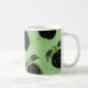 Green and black coffee mug. Apple pattern in a rustic woodcut design for a country kitchen.