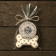 This vintage-style dog bakery label features a hand-drawn illustration of a paw-print jar surrounded by wheat and biscuits, giving it a rustic, old-world charm. Perfect for pet treat packaging or doggie gift bags, this round sticker design looks like kraft paper (image only) and includes editable text areas for ingredients, slogan, and weight. Ideal for small-batch bakers and homemade dog treat brands.