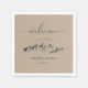 Beautiful simple artsy mountain silhouette motif with text "welcome' in an elegant script against a faux kraft paper background for a MOUNTAIN WEDDING or ANY EVENT custom paper napkins.