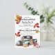 Watercolor autumn leaves, rusty orange-red and golden green, drift across this invitation. Anchoring the bottom are a rustic, rusty vintage blue truck and arrangements of pumpkins, flowers and foliage. The details for your "Friendsgiving Potluck" gathering are in two contrasting fonts, a script font and a small, sans serif, both in black. It's simple to swap the details of your event for our placeholder information. On this versitile invitation, you can make the hours for brunch or dinner instead of lunch. Just hit "Personalize" and get started. Your return address and personal note are on the back of the postcard. Again, the spacing is in place, you have only to swap your personal info for that of the placeholders.