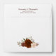 These square shaped envelopes are the perfect compliment to your wedding invitations. They feature a white background with a pre printed return address and a small cluster of watercolor roses in shades of rust orange, burnt umber, and coral peach. The inside is a dark marbled rust color with the same flowers printed on the inside flap. Perfect for a fall or autumn wedding.