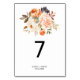 This rustic autumn elegant floral wedding table number is perfect for a modern wedding reception. The design depicts hand-drawn gold, purple, yellow, and blush beautiful roses with green leaves, inspiring the colorful beauty of autumn.