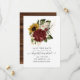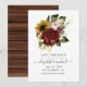 Wedding save the date featuring maroon and white roses and sunflowers with elegant handwriting typography.
