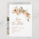rustic fall floral, bohemian terracotta design with stylish modern lettering. Our beautiful personalized wedding save the date cards feature a stunning design that complements any wedding theme. The front of the card features a personalized text along with a beautiful image.